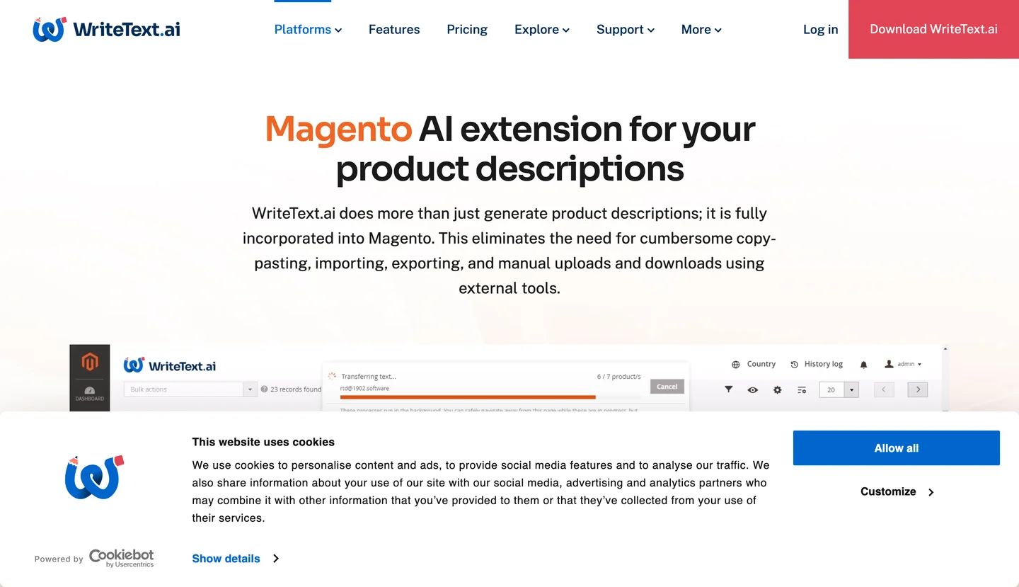 WriteText。ai是专门为Magento设计的基于ai的产品描述创建者。作为扩展,它自主形成元标题,元描述,详细和简短的产品描述,开放图形文本,不忘图像文本。所有这些都发生在Magento后端系统中。功能-支持无限的电子商务网站和用户帐户。-直接内容传输和发布到Magento。—允许选择独特的产品属性、色调和风格。-能够自定义内容长度,指定目标受众,分配用户角色。-增强图像评估,其中WriteText。Ai通过检查产品图像中的额外细节来增强生成的文本,从而生成更准确、更吸引人的描述,特别是对于数据有限或名称复杂的产品。-针对潜在目标市场的人工智能建议。-详细的关键字分析和对语义关键字的建议。-监控关键词密度,增强SEO。-文本修改选项。—参考产品特性,保证与现有产品在色调、风格、布局上的一致性。-访问内容审查历史记录和批量内容管理。-支持多个存储平台。-一个Chrome扩展简化的内容管理和产品标签验证或重写。WriteText。ai提供了两种灵活的操作模式:“写文本”。“Single”和“WriteText”。ai散装的。“单一”模式允许用户在生成文本之前调整每个产品的设置,而“批量”模式同时为多个产品生成文本,而无需持续的人工监督。这个扩展可以连接到无限数量的电子商务网站,也支持创建多个用户帐户,无需额外费用。这对于跨各种电子商务平台运营并需要管理多个用户帐户的企业尤其有利。在“WriteText。ai“Single”模式,用户可以为特定产品指定色调、风格和目标市场。它还使用户能够进行彻底的关键字分析,选择语义关键字,并决定哪些产品属性应该包含在生成的文本中。该扩展在大约50秒内生成自定义文本,然后可以在发布之前进行审查和编辑。这里的主要焦点是创建定制的内容,以满足特定的受众需求,并广泛强调SEO。同时,“WriteText”。“批量”模式允许用户一次为多个产品生成文本。此模式支持多个产品的选择,同时在所有选择的产品中保持一致的色调、样式和属性。它针对速度和效率进行了优化,使其成为大规模内容创建需求的理想选择。为了迎合全球用户的需求,WriteText推出了1.2版。Ai现在支持多种语言。这些语言包括丹麦语、瑞典语、挪威语、德语、法语、葡萄牙语、西班牙语、加泰罗尼亚语、荷兰语和意大利语等。此功能允许企业以其Magento网站的语言自动生成内容,从而扩展其市场范围并增强全球客户互动。总是把易用性放在第一位,WriteText。Ai的设计是根据您网站的语言来调整输出。如果某种语言不可用,默认为英语,以确保清晰易懂的沟通。值得注意的是,该界面的翻译目前正在进行中,以迎合非英语用户。#WriteYourTextWithAI免责声明:WriteText。ai是一个独立的工具开发与Magento工作。它不是Magento的附属或认可。
